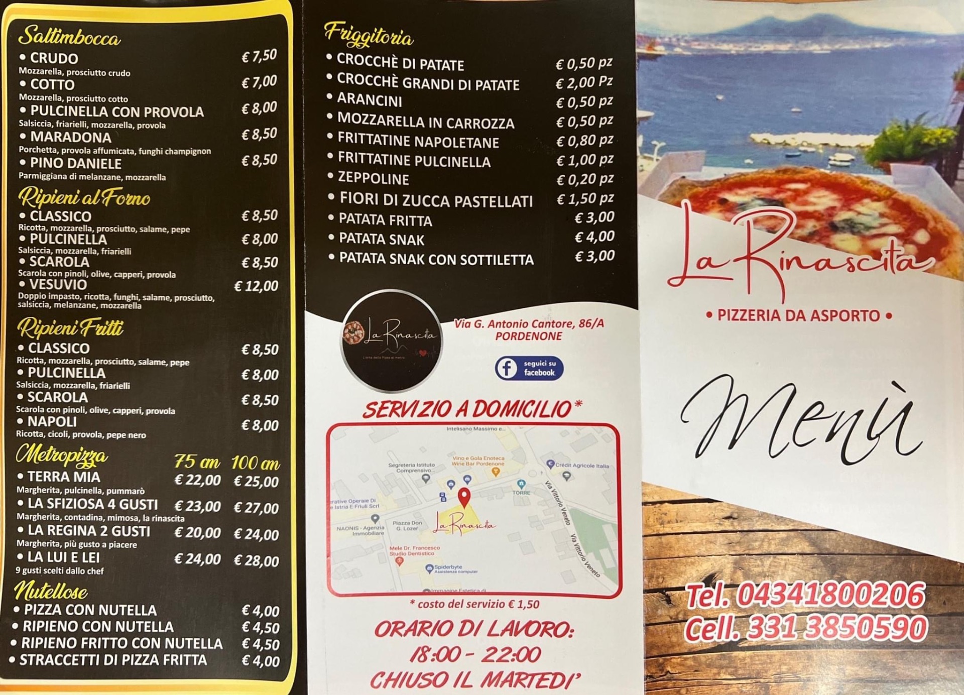 Per contattare la nostra pizzeria "La Rinascita" potete utilizzare diversi canali, a vostra scelta